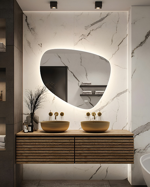 1. Возможность изготовления предмета на любой вкус. Продажа зеркал по индивидуальному проекту позволяет создавать изделия для любого помещения с учетом его архитектурных особенностей и общего интерьера. Модель может предполагать раму определенного исполнения, оснащаться подсветкой, обогревом и др. Создаваемые варианты идеально подходят для использования в ванных комнатах, спальнях, прихожих, гардеробных и др.